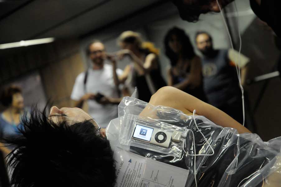 Un individuo è fermo in un qualsiasi luogo, o non luogo, di transito: una stazione, un museo, una sala d’attesa, un supermercato, una strada.